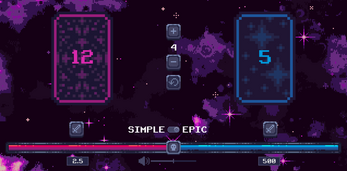 Bottom left number input is time to roll a number (in seconds) for simple mode, bottom right is time between steps (in ms) in epic mode.