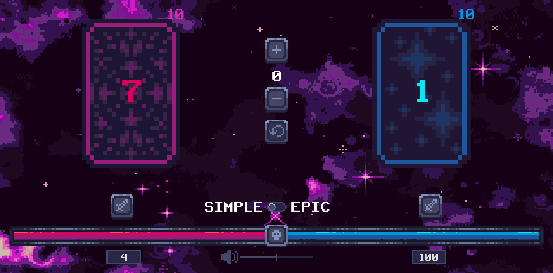 Rolls a random number between 1 and the number you input on the card. The card with a lower number loses. In case of a tie, the card that attacked (they have separate attack buttons) loses.